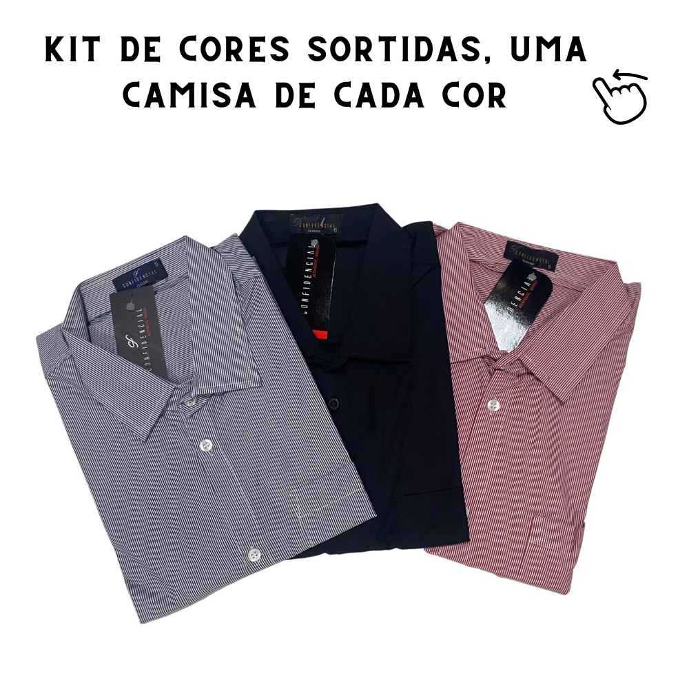 Kit 3 Camisa Social Manga Curta Promoção Cores Variados