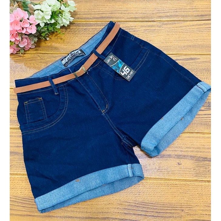 Short Mom Jeans Sem Lycra Com Cinto Couro Feimina