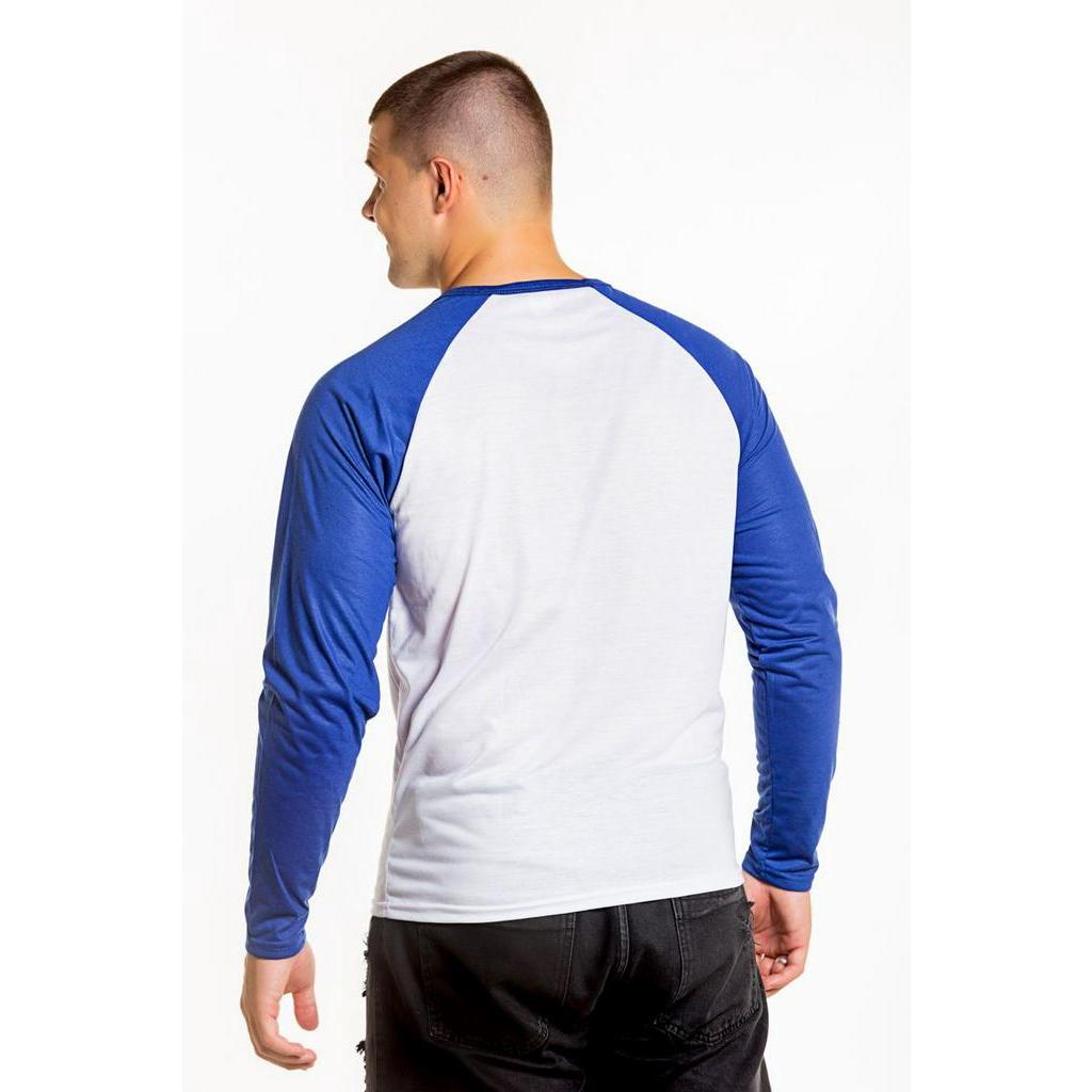 Blusa Raglan Manga Longa Branca Com Azul 100% Poliéster