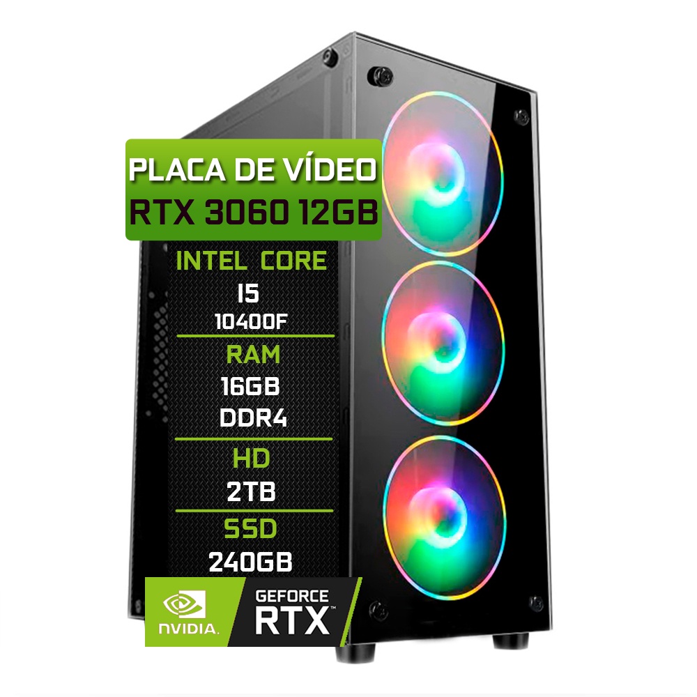 PC Gamer Fácil Intel Core I5 10400F ( 10ª GERAÇÃO ) 16GB DDR4 RTX 3060 12GB HD 2TB SSD 240GB - Fonte 750w