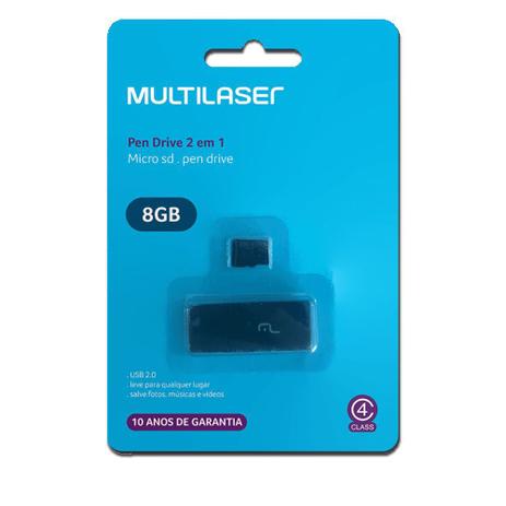 Pen Drive 2 em 1 Leitor USB + Cartão de Memória Classe 4 8GB Preto Multilaser