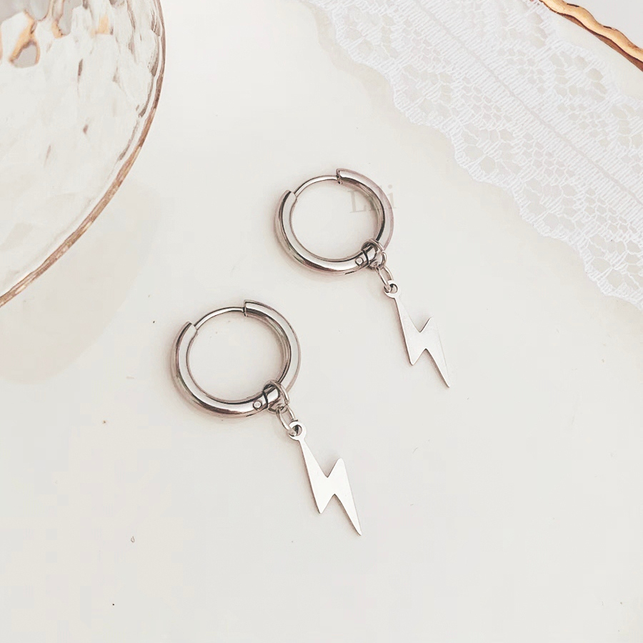 1 Par Brinco de Argola com pingente raio/Aço inoxidavel