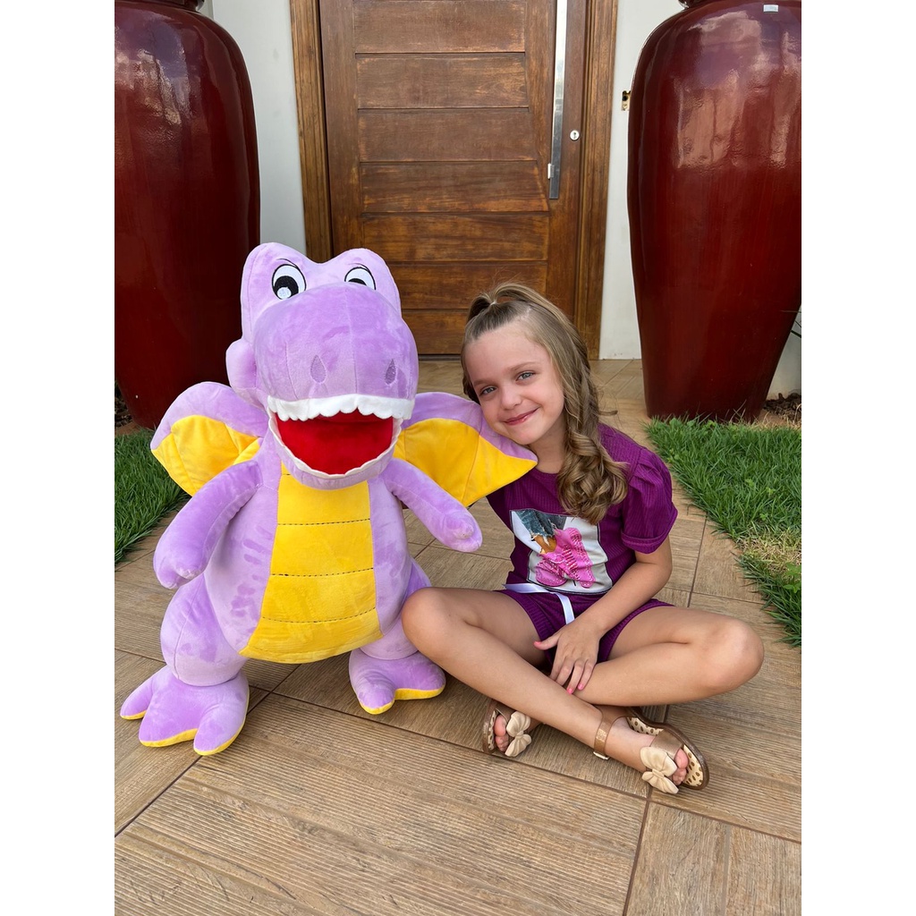 Dragão de Pelúcia Gigante Antialérgico 74 cm Lilás Decoração Quarto Festa Infantil Presentes