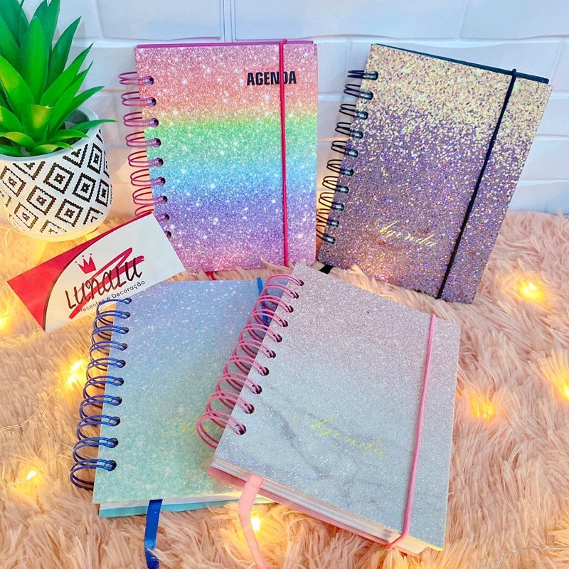 Agenda 2024 Espiral Capa Dura Colorida Glitter Brilho 15x19 cm/11x15cm