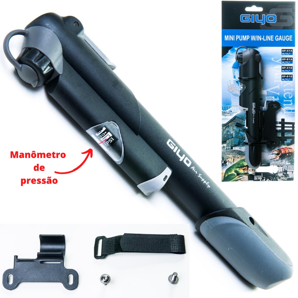 Bomba de ar Bicicleta com Calibrador Manometro Telescópica Giyo gp61 Mtb Speed Valvula Grossa ou Presta Fina