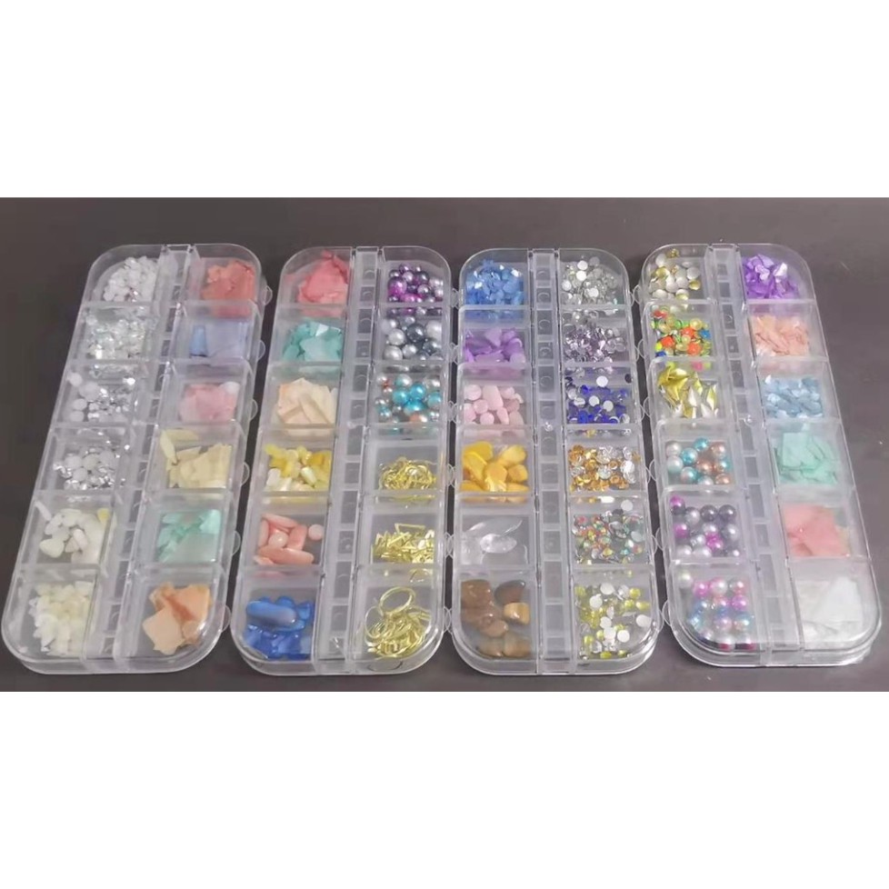 kit 12 ENFEITES DE UNHA DECORACAO MADRE PEROLA PEDRAS BOLINHAS ETC COLORIDO - ENVIO ALEATORIO