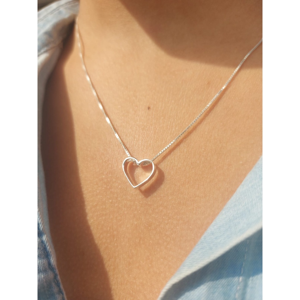 Colar Coração Vazado Feminino em Prata 925 - tipo Tyfanny