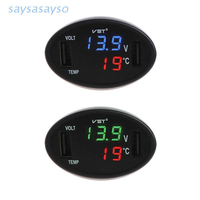 Says Termômetro Digital Led Voltímetro Carregador Usb Auto Monitor De Bateria Medidor De Temperatura Do Carro