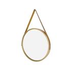 Espelho Decorativo Redondo Moldura Dourada Alça Marrom 53 cm