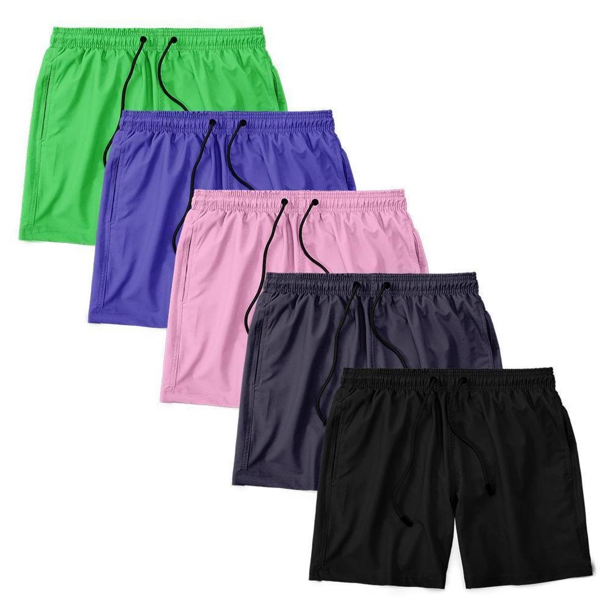Kit 5x Short Treino Corrida Academia Mauricinho Tactel Masculino Bermuda Neon Praia