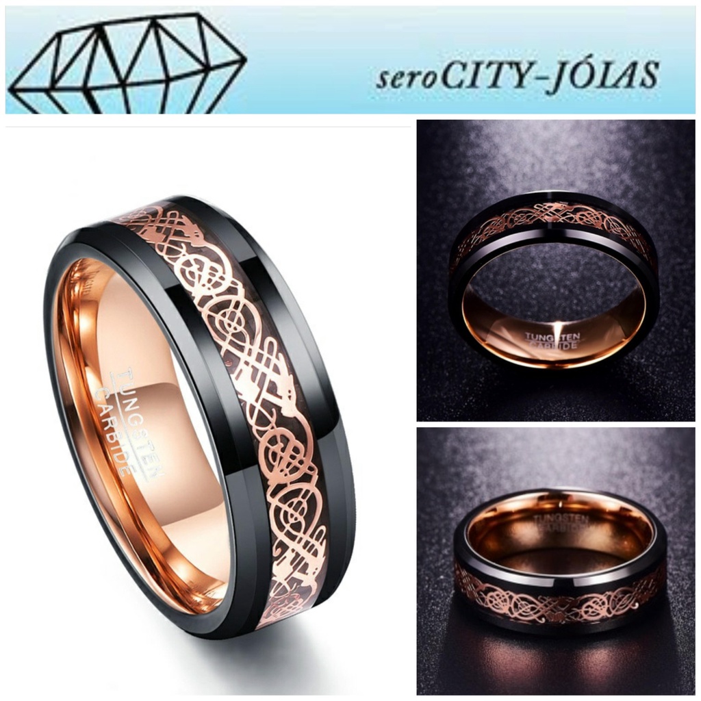 Par De Alianças De Tungstênio Celta Preta e Rose 8mm Aro 13 Ao 38