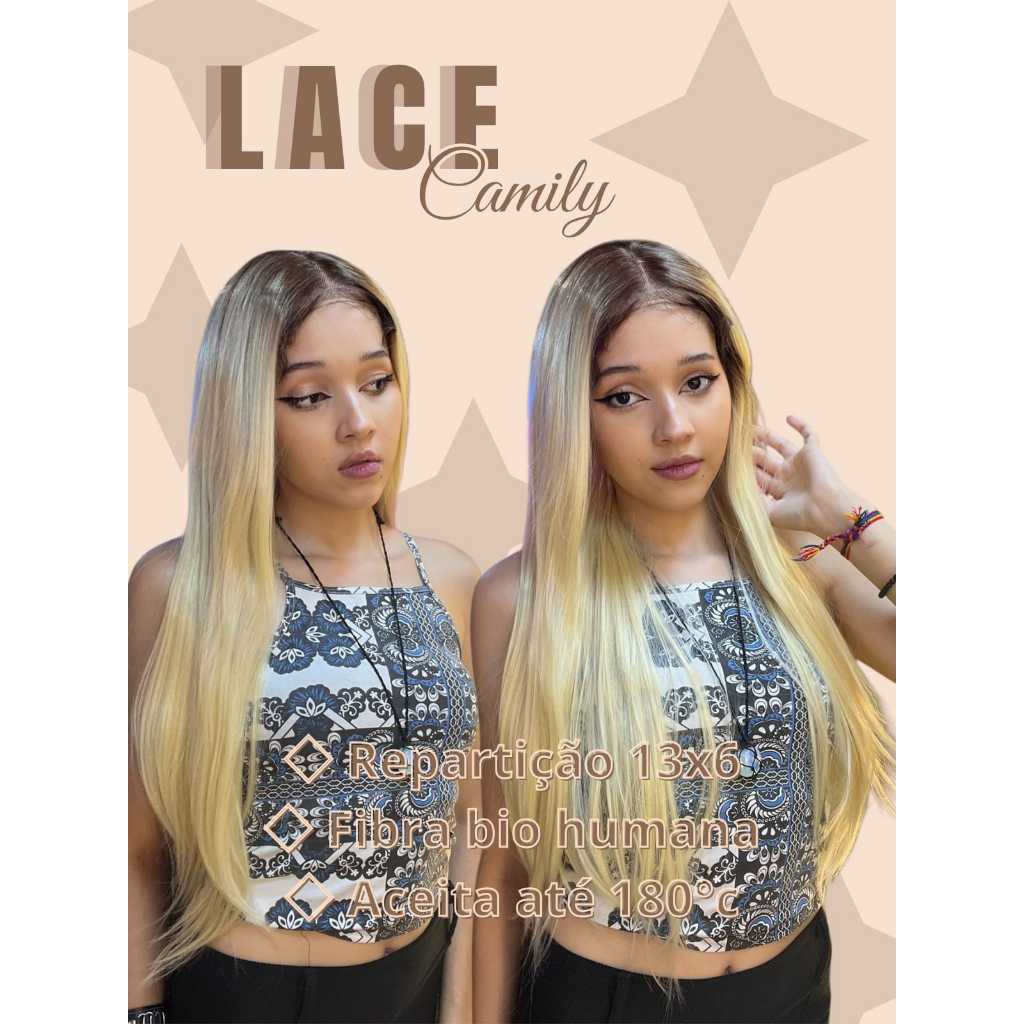 Peruca Front lace HD Repartição Livre 13x6 Loira ( Human Hair 8% Cabelo Humano + 95% Fibra )