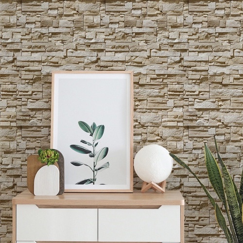 Papel de Parede 10 Metros 3D Pedras Canjiquinhas Bege Autoadesivo