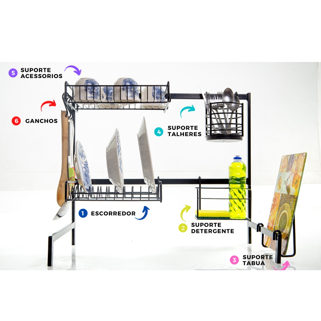 Escorredor Louça Autossustentavel Suspenso Organizador para Bancada Cozinha Pia Aço