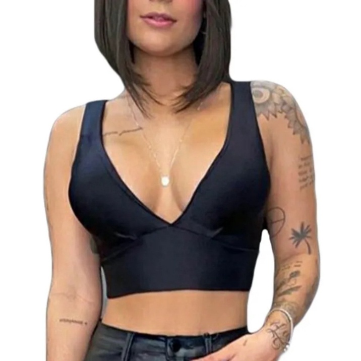 Cropped Top Feminino Com Decote Profundo Frente Única Com Amarração e Bojo Tendência