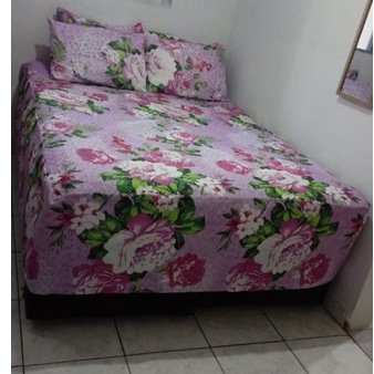 Colcha para cama box casal padrão estampada 03 peças no tecido micropercal fio 100 estampas sortidas