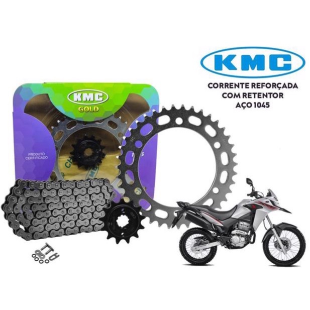 Kit Relação Transmissão Kmc Gold Xre 300 Com Retentor Original Codigo 80474 - H 1