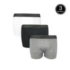 Kit Com 3 Cueca Boxer Lisa Basica Confort Masculina Branca Preta e Cinza