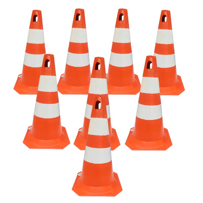Kit 8 Cone Sinalização Trânsito Laranja E Branco 50cm
