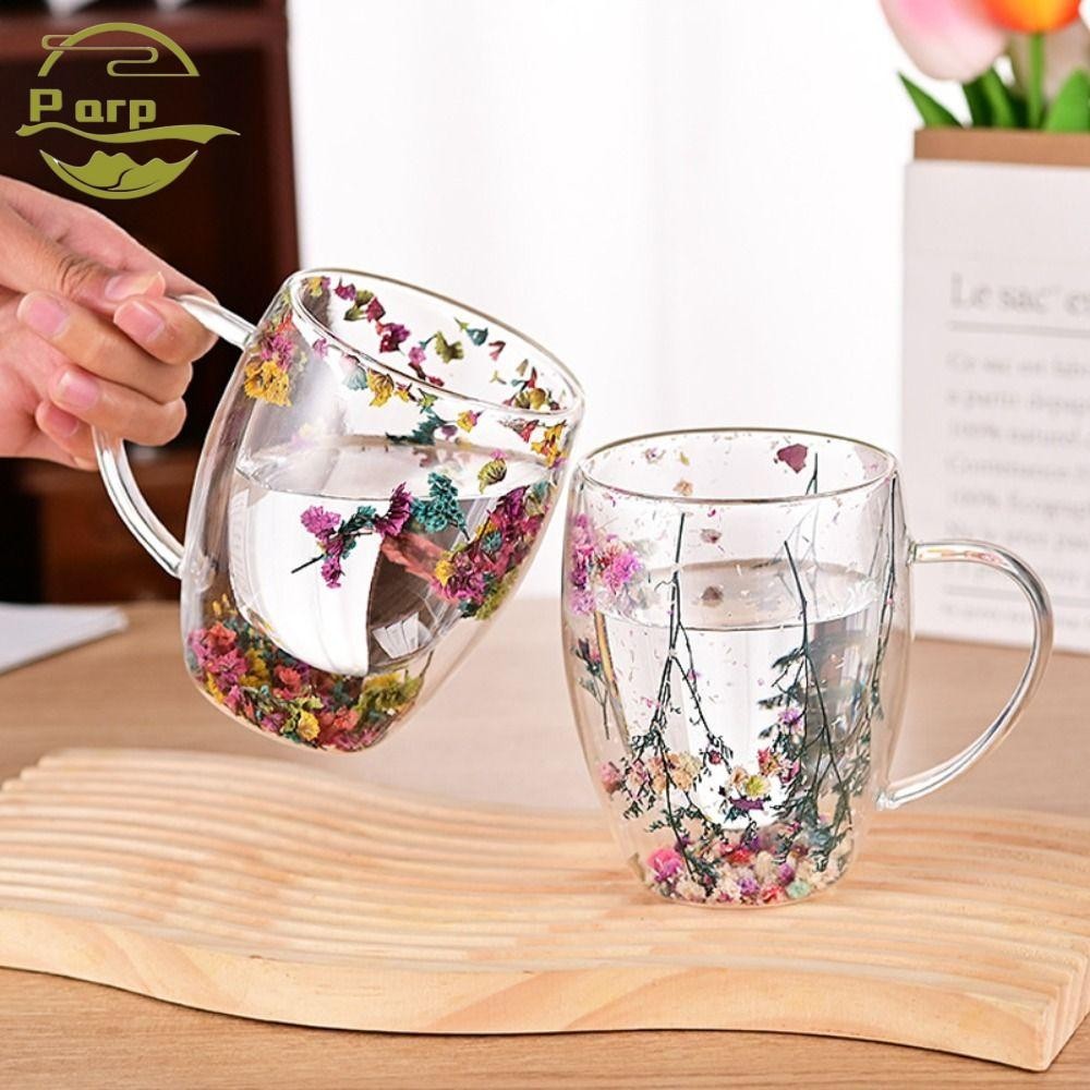 Parperperty1 Xícara De Flores Secas , Vidro Floral De Alto Borosilicato De Parede Dupla , Com Alça Tendências INS Xícaras De Chá Simples Resistentes Ao Calor Café Criativas