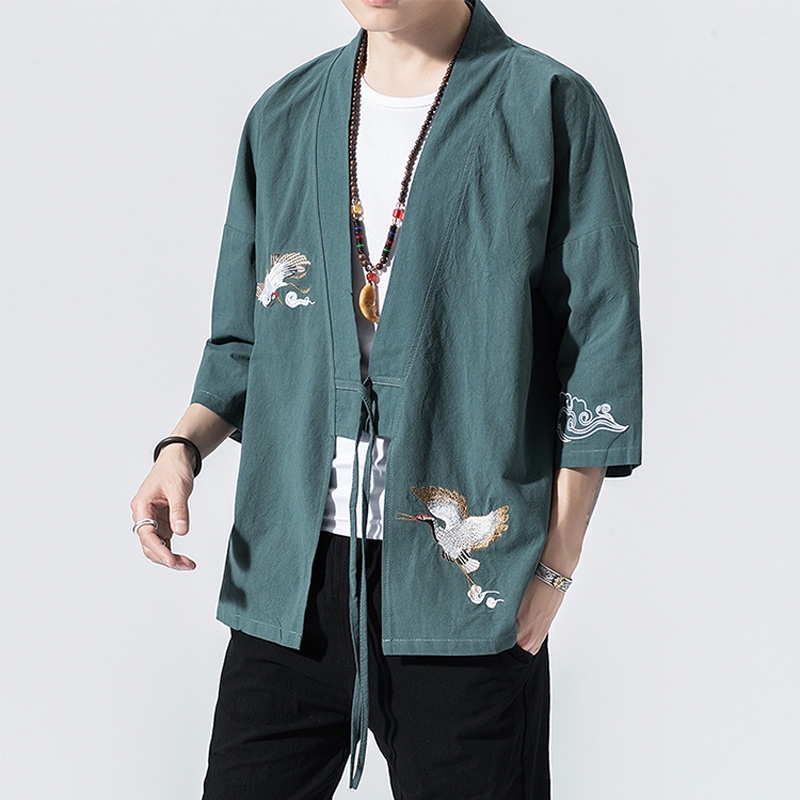 Camisa De Linho De Algodão De Verão Kimono Homens Vintage Loose V-neck Cardigan Casual Tradicional Hip Hop