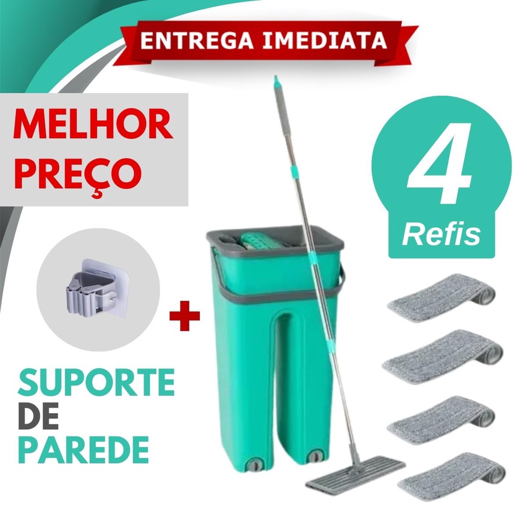 Super Kit Mop Flat limp Magico Fit Com Reservatorio Refil Suporte Refis flash