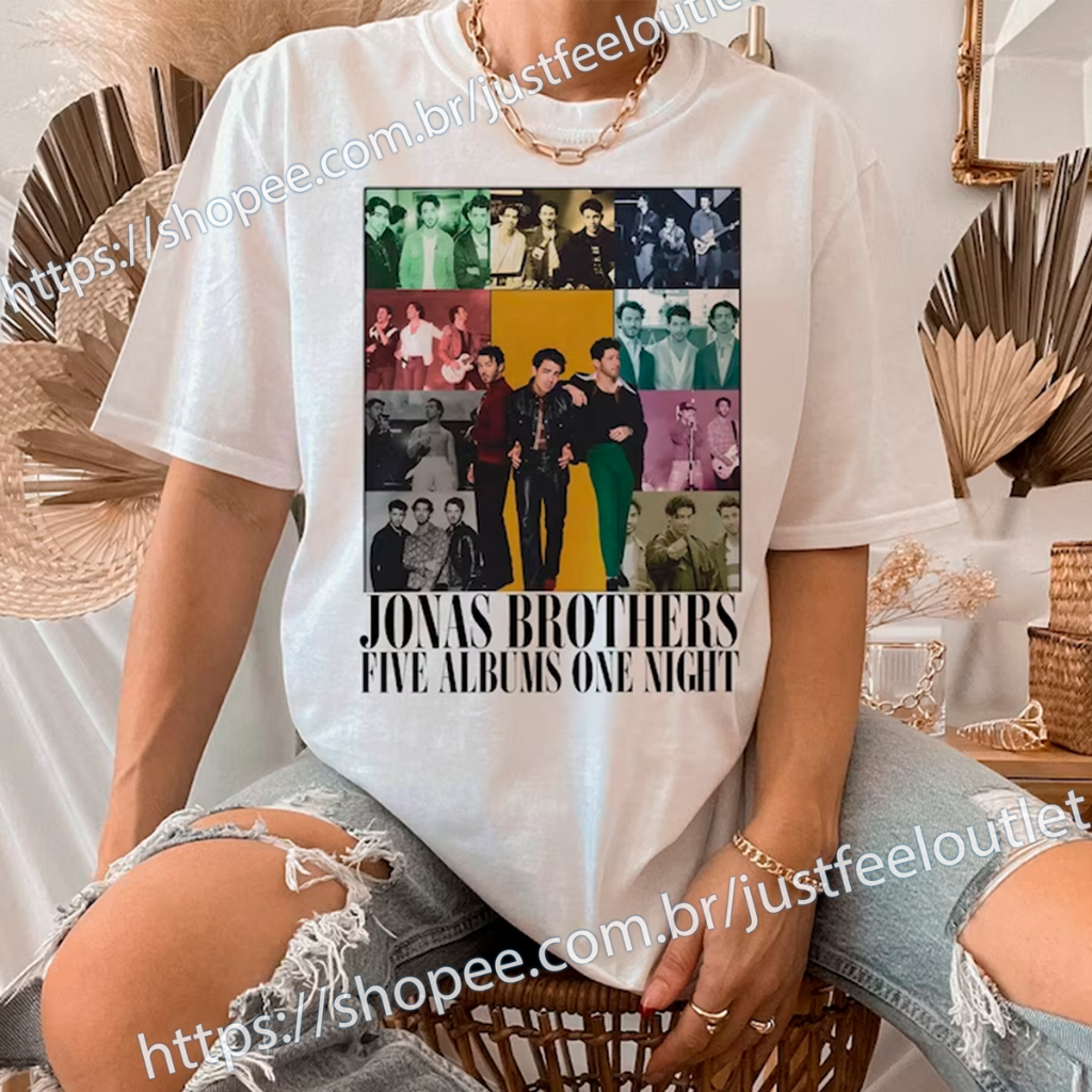 Camiseta T-shirt Unissex Algodão Jonas Brothers Photos Five Albums One Night