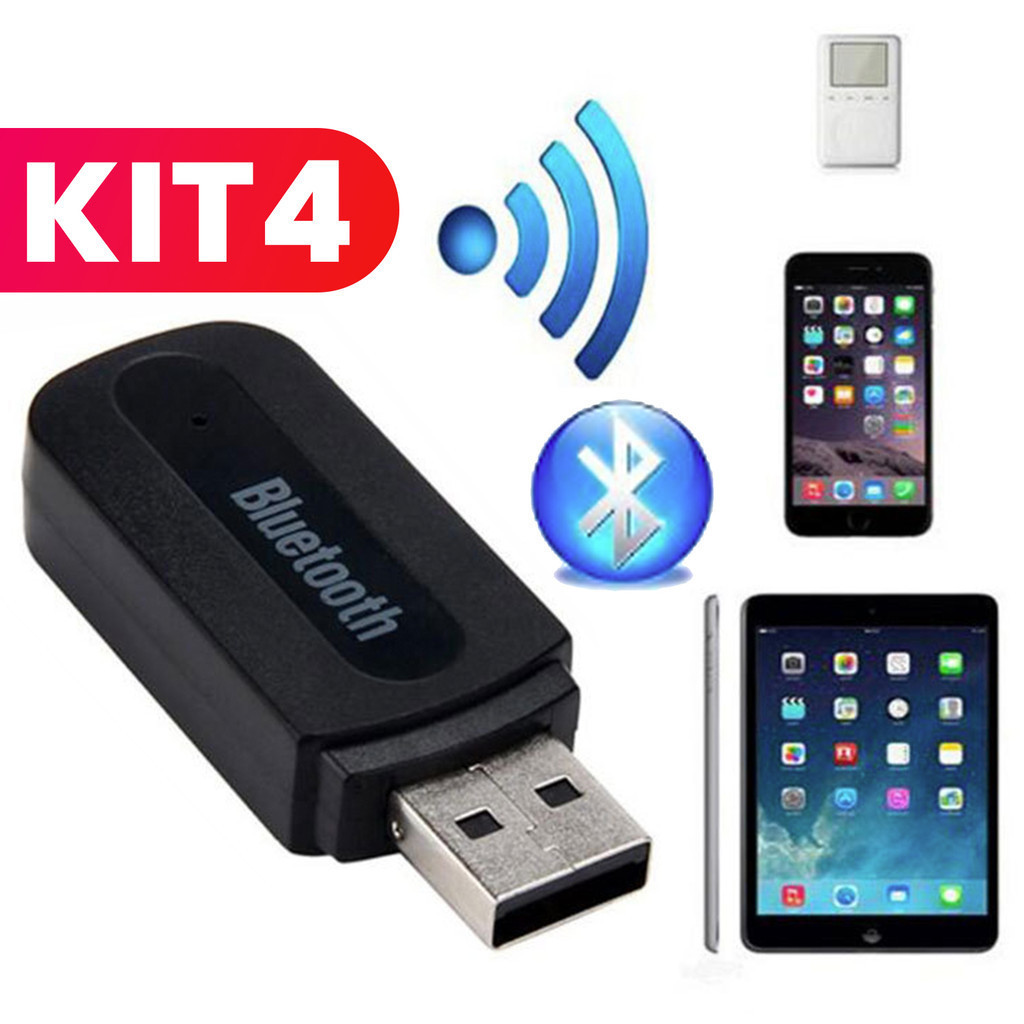 Kit 4 Receptor Bluetooth USB Música P2 Chamada Adaptador De Som Para Carro