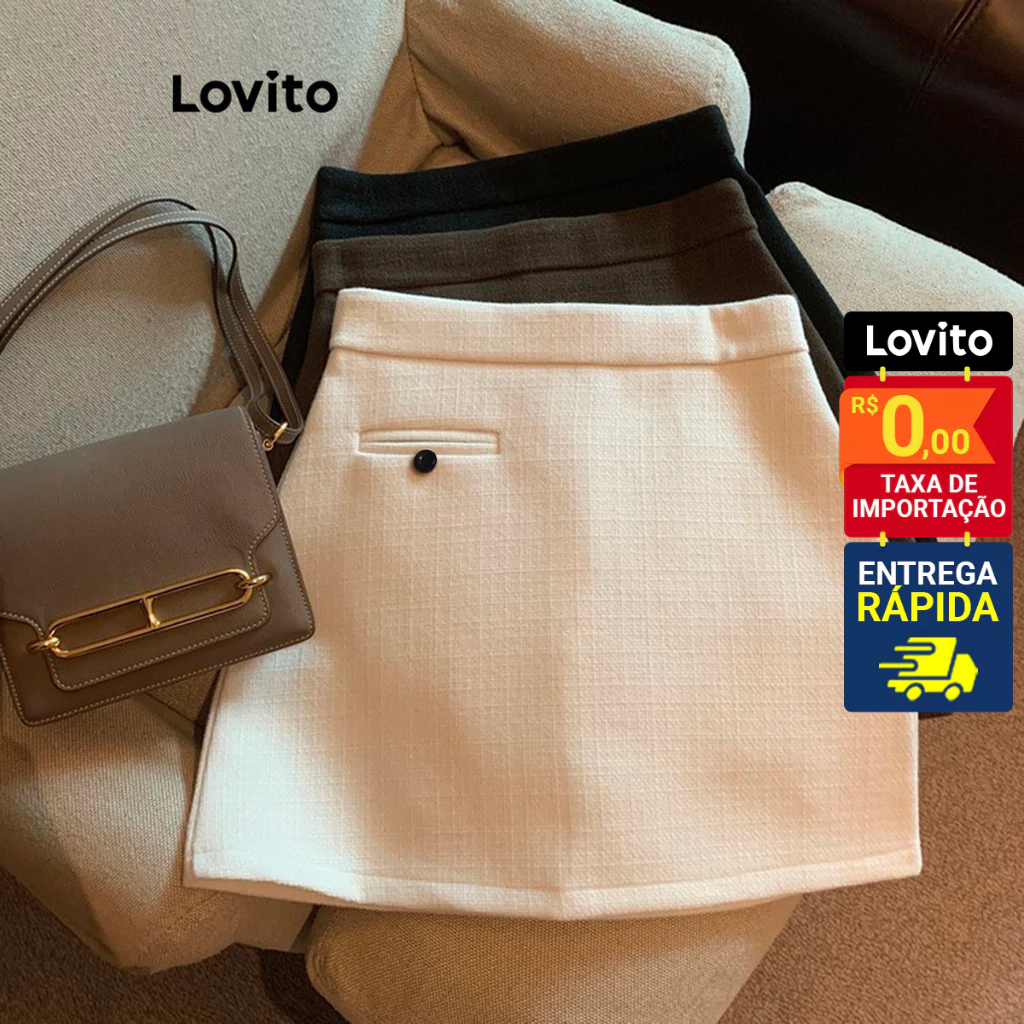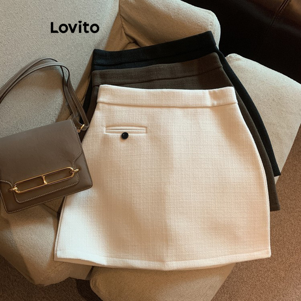 Lovito Casual Saia Feminina Lisa Assimétrica Bolso LNE40567