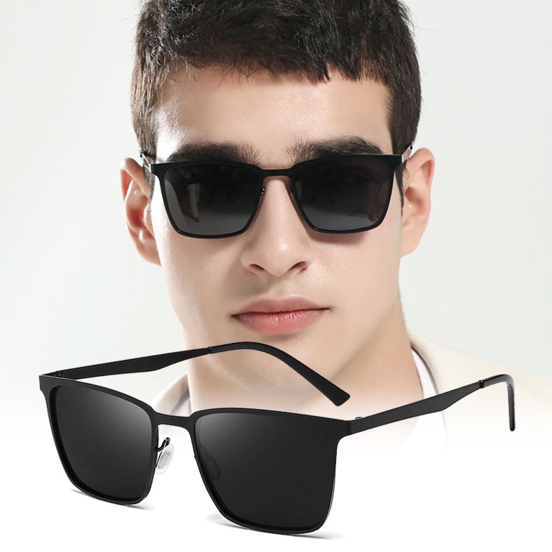 Óculos De Sol Clássico Quadrado Polarizado Masculino Preto Fosco UV400 Moda Primavera Dobradiça