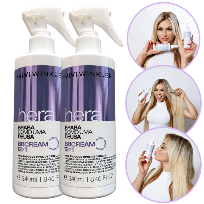 Kit 2 Finalizadores Capilar Poderoso para Cabelo BB Cream Hera By Vivi Winkler 12 em 1 Multifunções Todos os Tipos de Cabelo