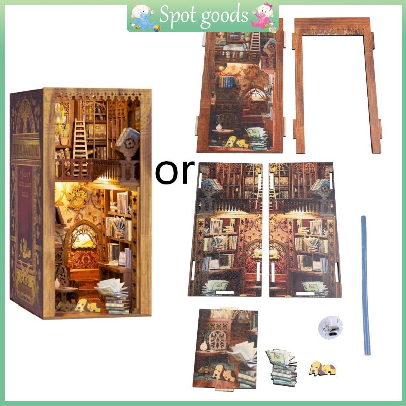 vivi Montagem Livro De Bricolage Nook Bookshelf Inserir Puzzle 3D Miniatura Dollhouse Craft Kit Adultos LED Building