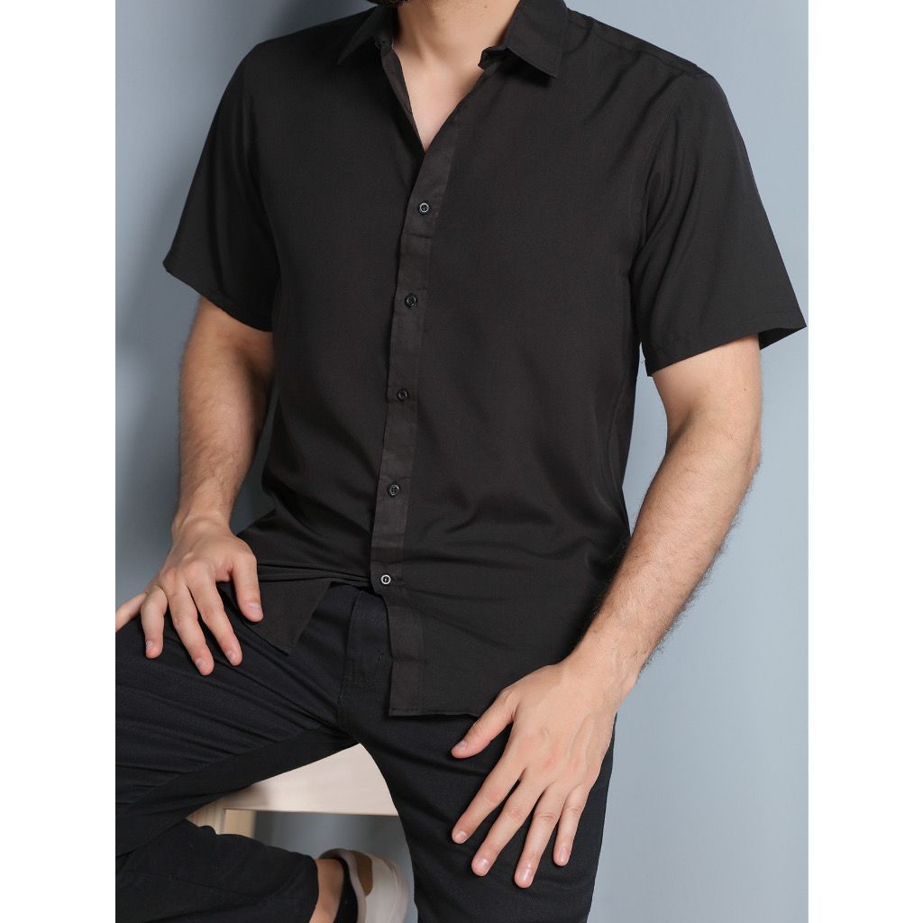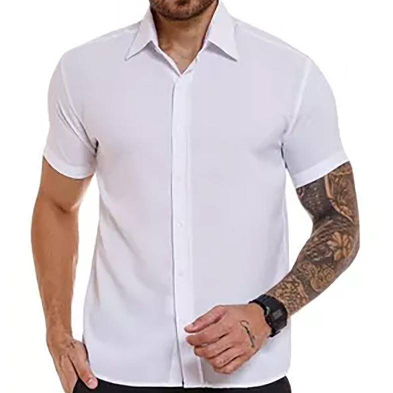 Camisa Social lisa Manga Curta básica Masculina Havaiana Verão 2023