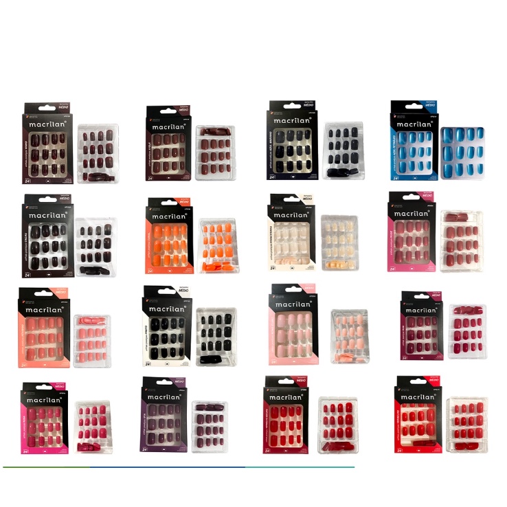 Unhas Postiças Macrilan 24 Unhas Coloridas Tamanhos