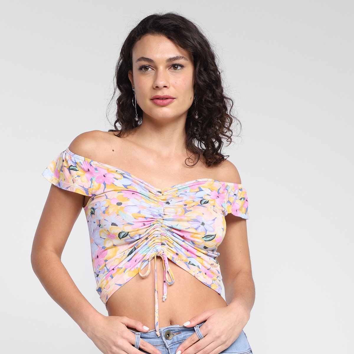 Blusa Lecimar Cropped Ombro A Ombro Floral Feminina