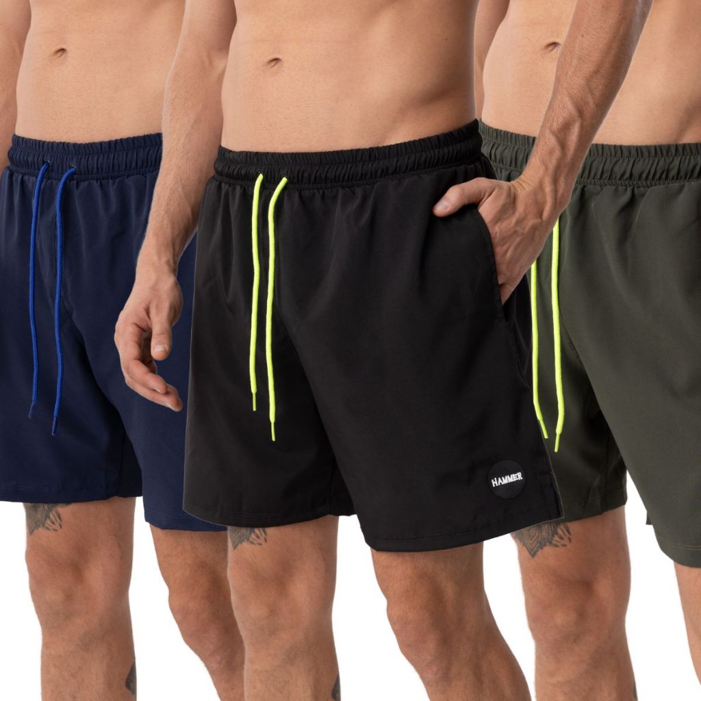 Kit 3 Bermuda Masculina Tactel Short Praia Neymar Mauricinho Com Elastano P ao G3 treino futebol
