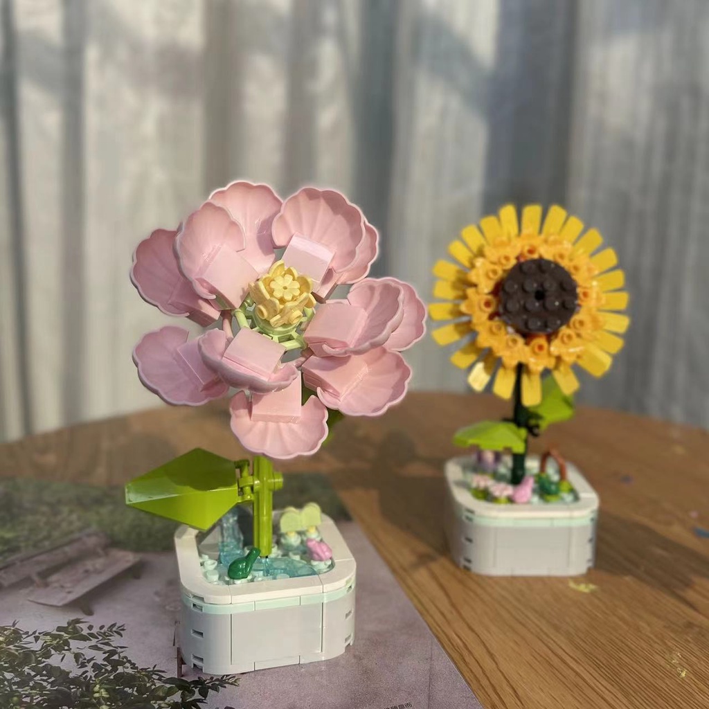 Compatível Com Rosas LEGO , Girassóis , Plantas Em Vasos , Blocos De Construção , Flores , Ornamentos De Brinquedos