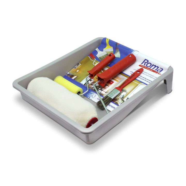 Kit Pintura 5 peças Multiuso Econômico Rolo De Pintura Para Parede 23cm + Suporte + Bandeja + Trincha + Rolinho