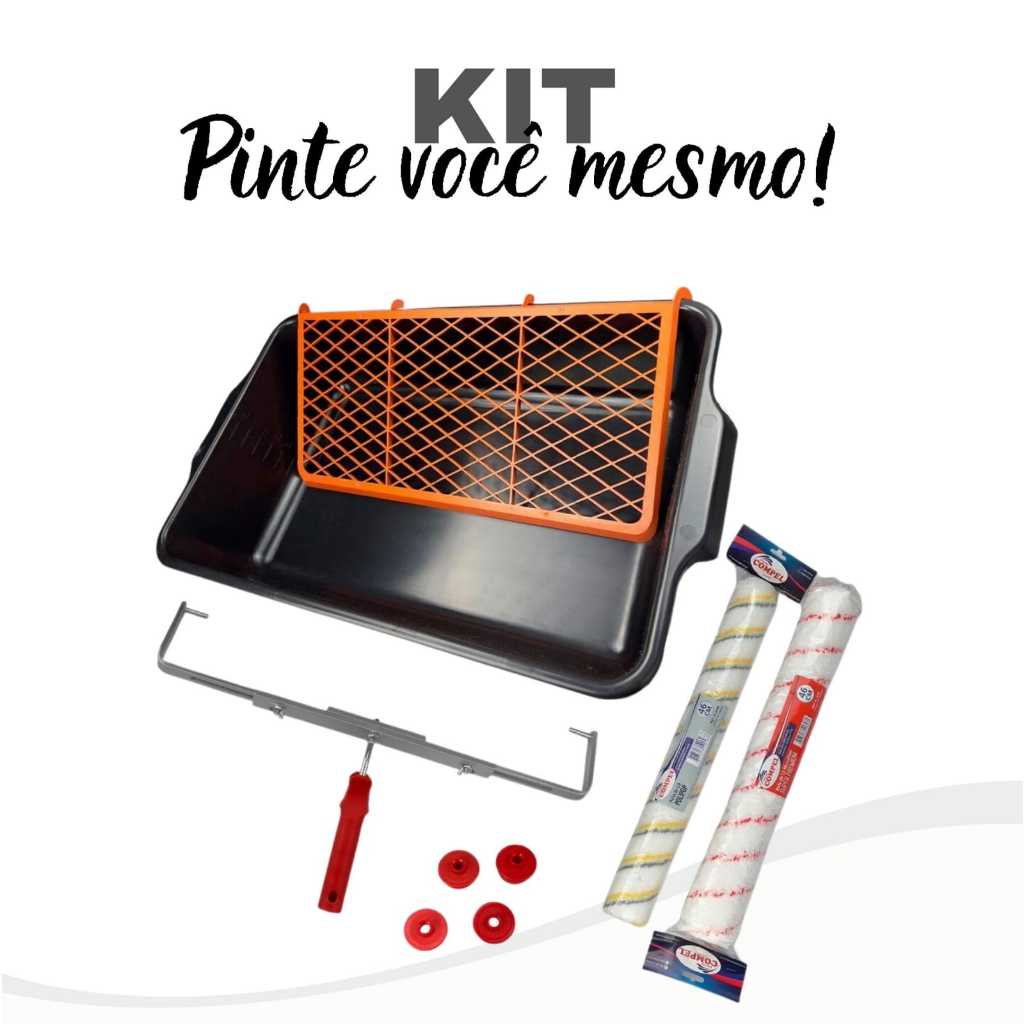 Kit para Pintura Compel Com Suporte Duplo Rolo de Lã Polipo Rolo de Lã Microfibra Bandeja
