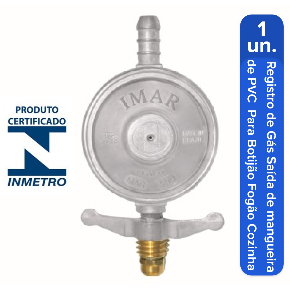 Registro de gás de Cozinha Regulador valvula p/ Botijão gas GLP com Saida para mangueiras com selo do inmetro
