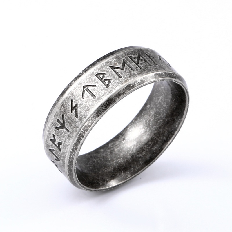 Anel Punk Vintage Viking Moda Masculina Aço Inoxidável Antigo Polido À Mão De Prata