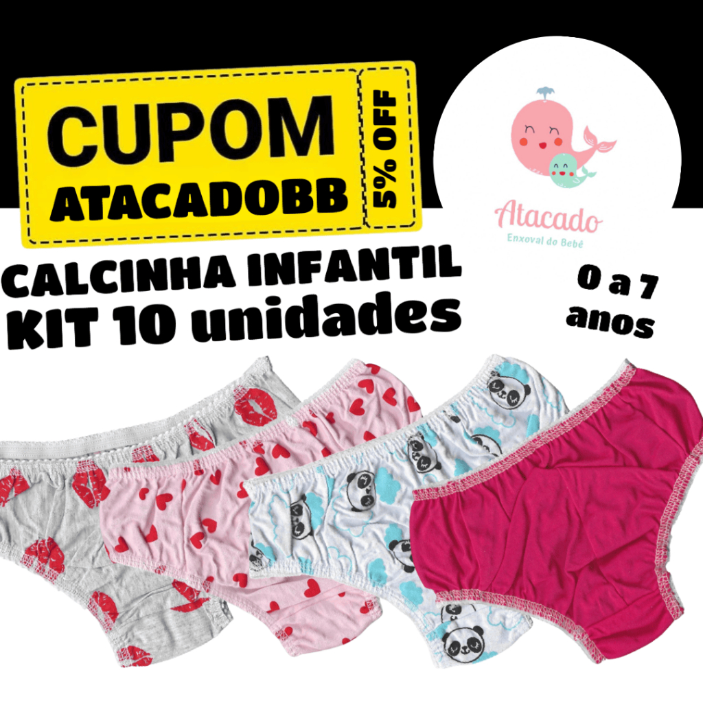Kit 10 Calçinhas Infantil Calçinha Menina Calçolinha MALHA Estampadas Sortidas Calcinha Bebê 0 a 8 ANOS