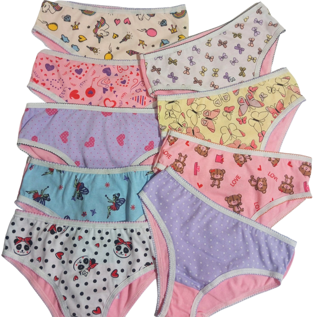 Calcinhas Infantil Kit 10 Un Estampadas E Sortidas Algodão Bebê Calcinha Menina 0 a 7 anos Linha Kids Desfralde