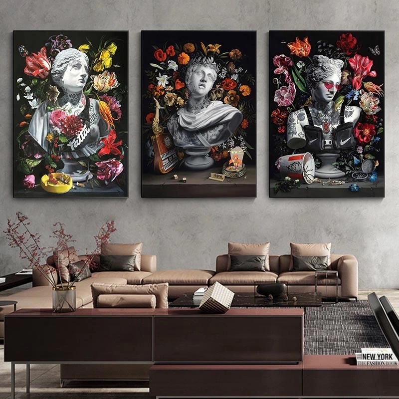 Quadro decorativo 3 peças 40x60 abstrato moderno abstração criativa mascarado escultura grafite tatuagem estátua decoração para casa sala quarto hall