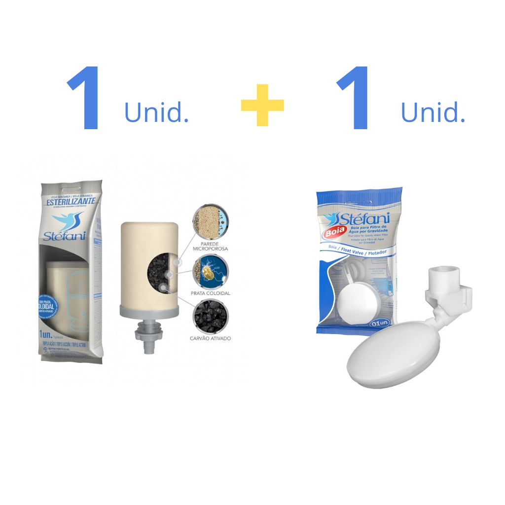 Vela para Filtro de Barro Tripla Ação Esterilizante + Boia para Filtro de Barro Stéfani - Kit 1 + 1