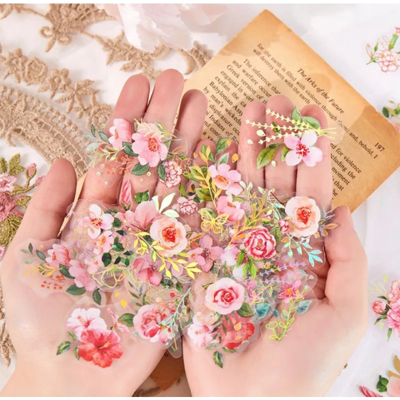 Adesivos kit flores vintage impermeável para scrapbook/bullet journal (Q20/100p)