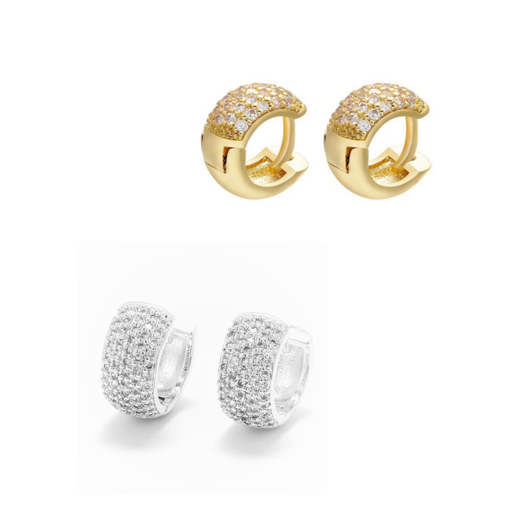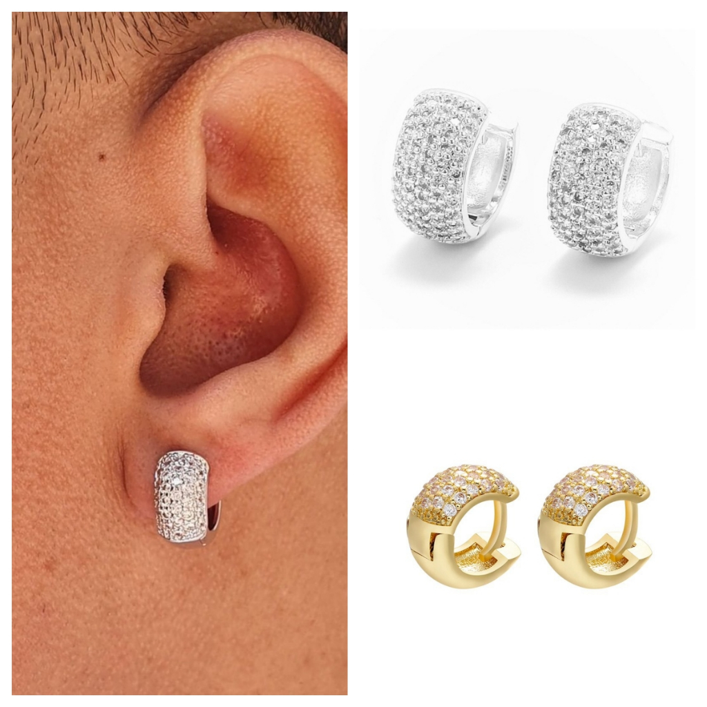 Par de Brincos Cravejados argola casual c/zirconia Ice de luxo brinco cravejado Premium prata/ouro