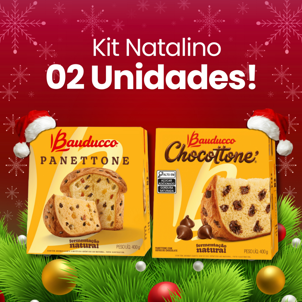 KIT 01 und Panetone Frutas Cristalizadas 400g + 01 und Chocotone 400g Bauducco