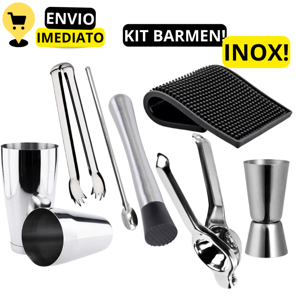 Kit Bartender Profissional Completo Inox Coqueteleira Boston Strainer Bailarina Dosador Socador