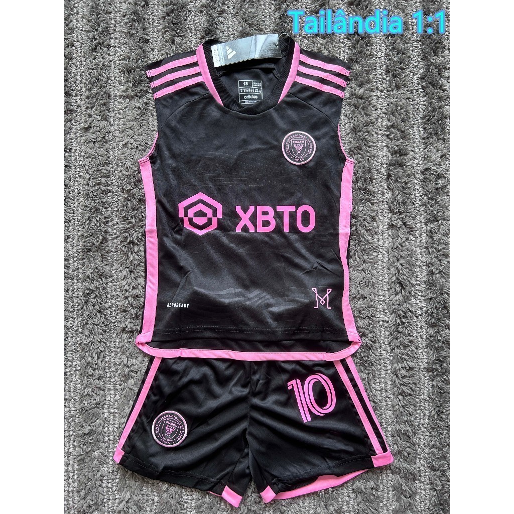 Novo 2023/2024 Infantil Kit Camisa de Time Conjunto Miami Rosa Criança Camiseta Blusa Camisa de Futebol Calções
